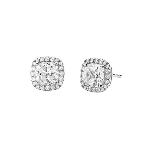 Precious Metal Sterling Silver Pave Square Stud Earrings