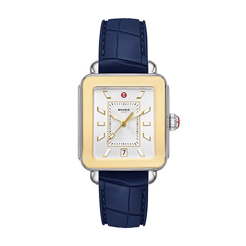 Ladies Deco Sport Two-Tone Navy Strap Watch Silver Dial